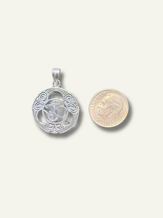 Silver Oxidized Om Symbol Round Pendant