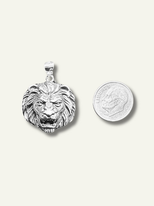 Silver Fierce Lion Head Pendant