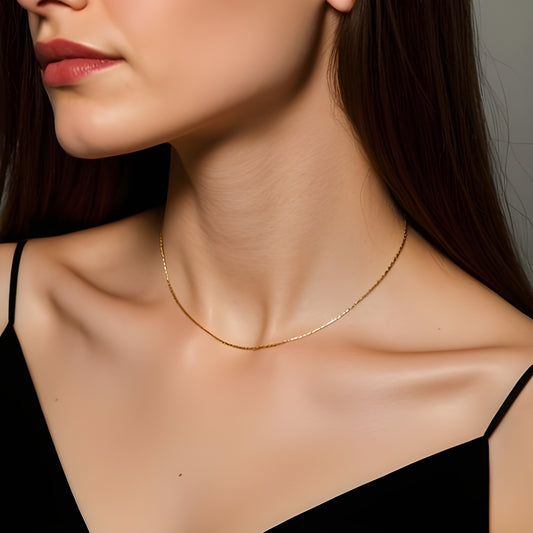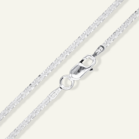 Silver Box Diamond-Cut Chain Necklace (Adjustable)