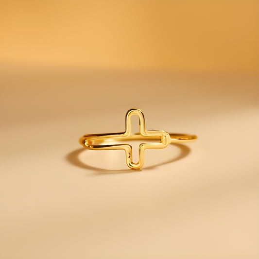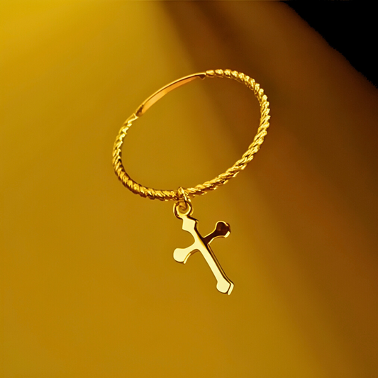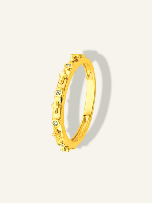 14K Yellow Gold CZ Mini Cross Rosary Eternity Band Ring