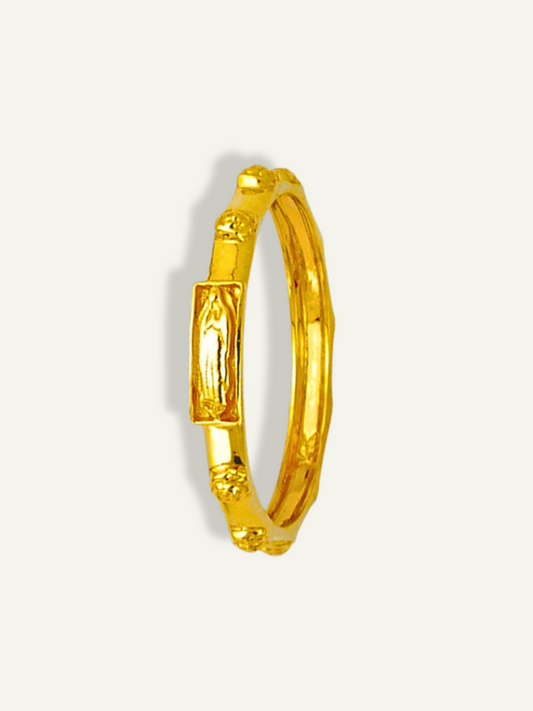 14K Yellow Gold Virgin Mary Rosary Band Ring